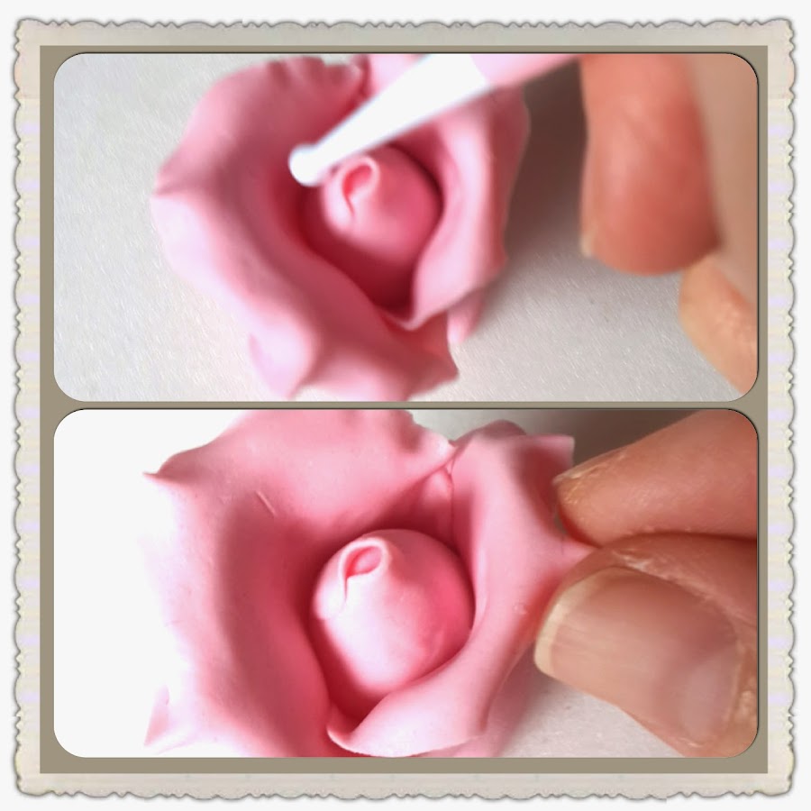 Con la yema de los dedos bajaremos los bordes del pétalo que hemos afinado, que para esto lo