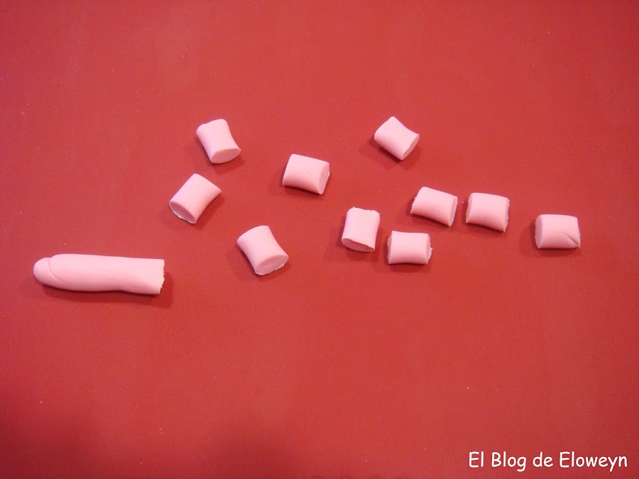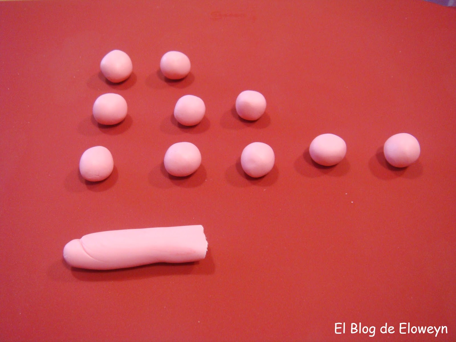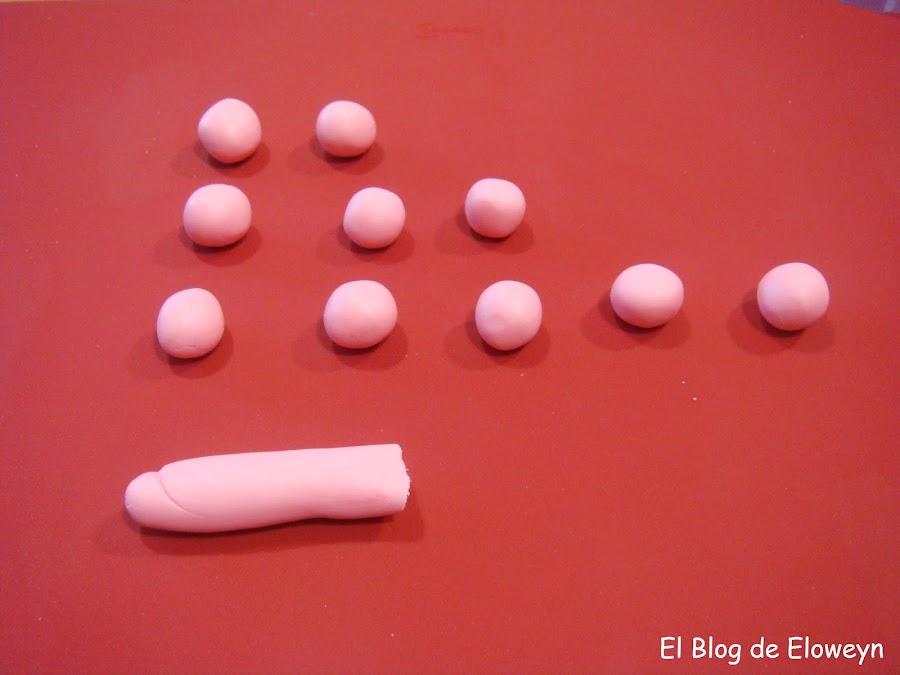 A continuación cogeremos cada uno de los diez trocitos de 1 cm. y haremos una bolita.