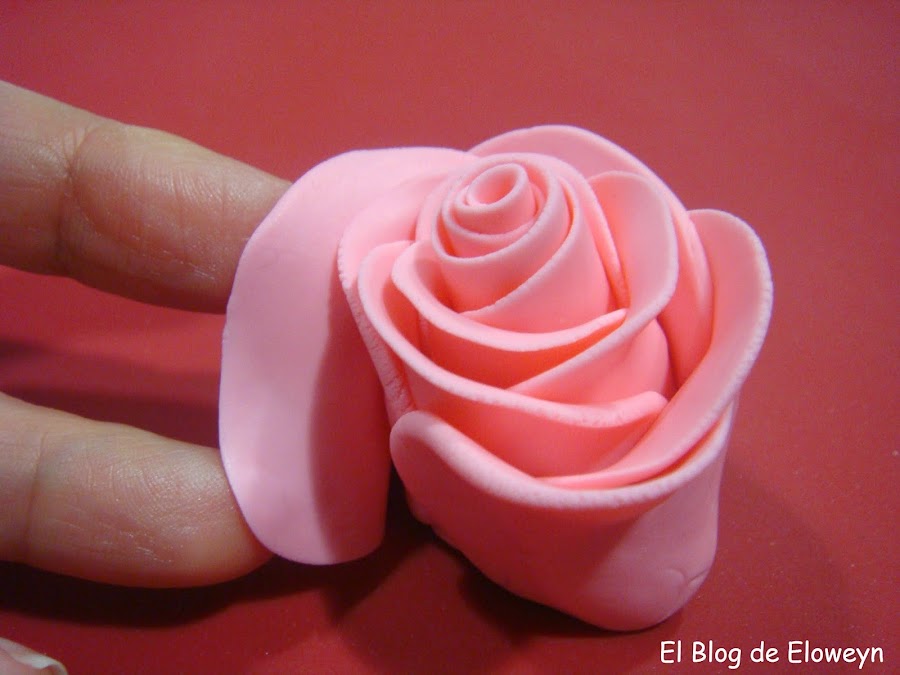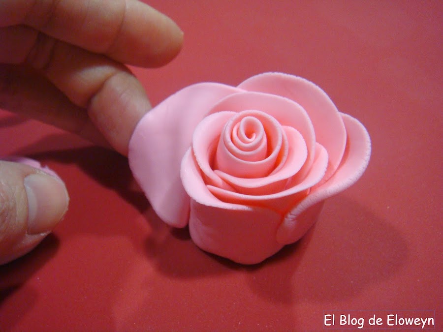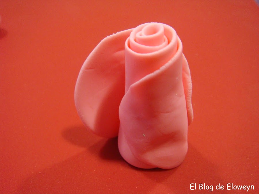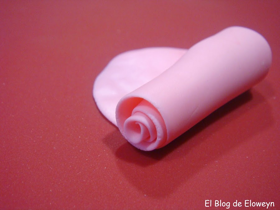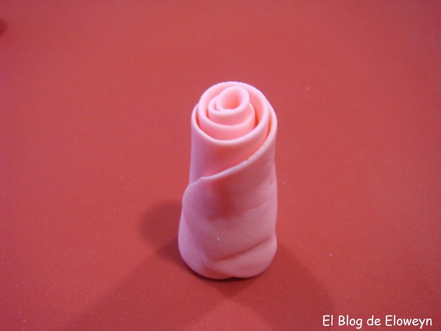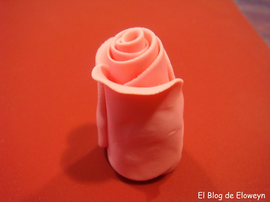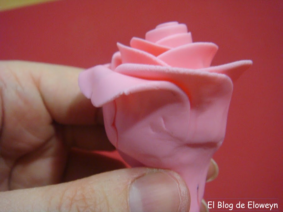 La tenéis que ir apretando hasta que al final podáis quitar la parte sobrante de debajo. De esta manera os quedará la forma de rosa.