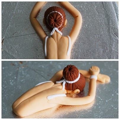 Y ahora la parte de arriba del vestido, cortando el fondant en forma de V lo iremos amoldando a la bailarina.