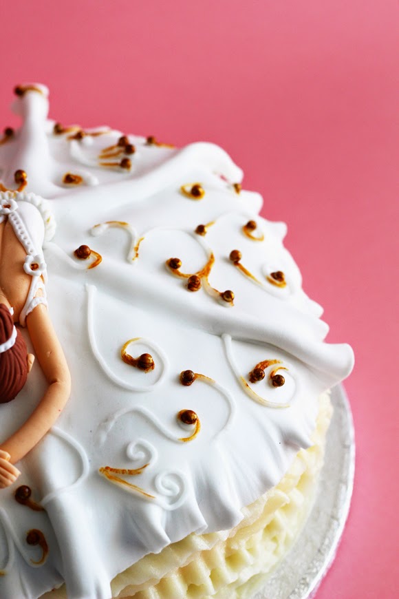 Con una tira blanca de fondant haremos un cinturón para rematar el corte y que quede bonito.