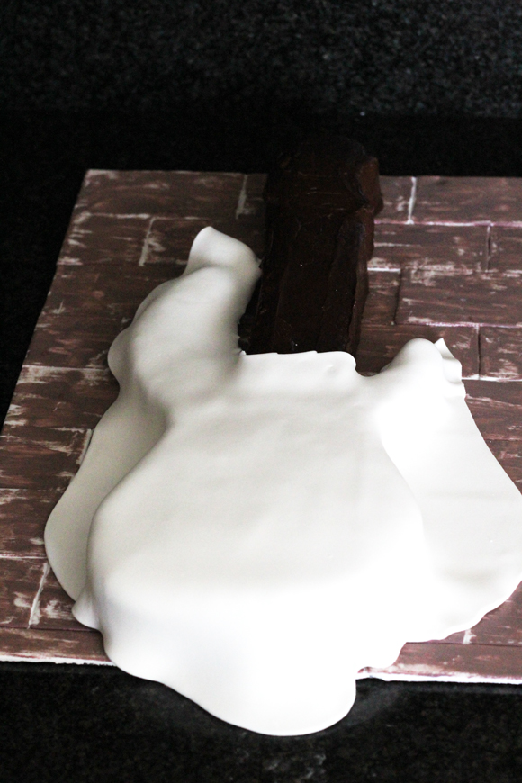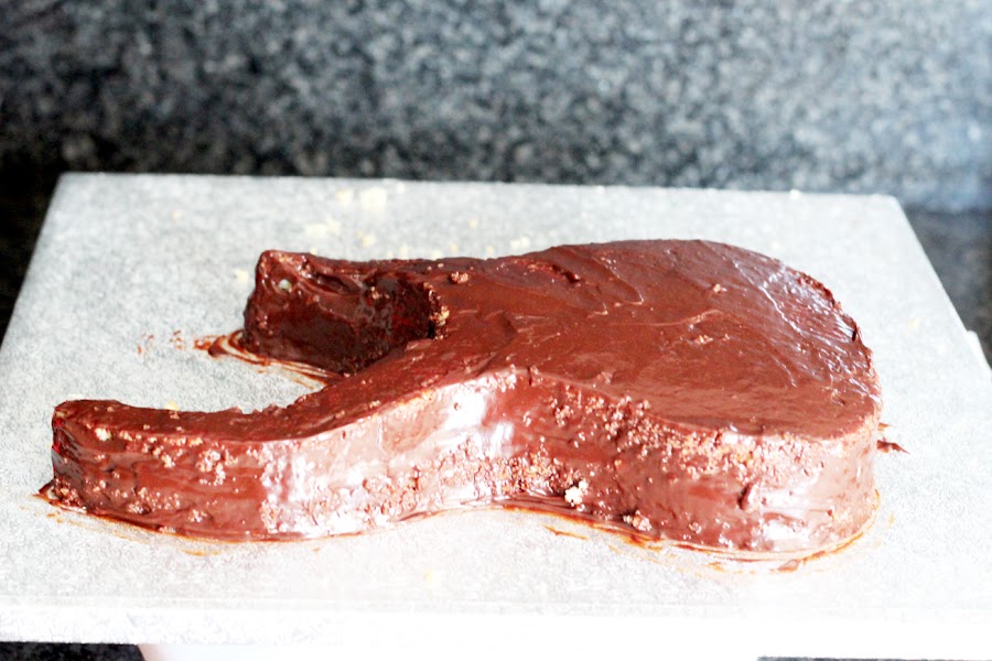 Una vez endurecido el ganache empezaremos a cubrir la tarta, y empezaremos por la parte grande de la tarta.