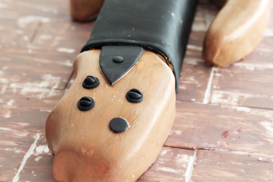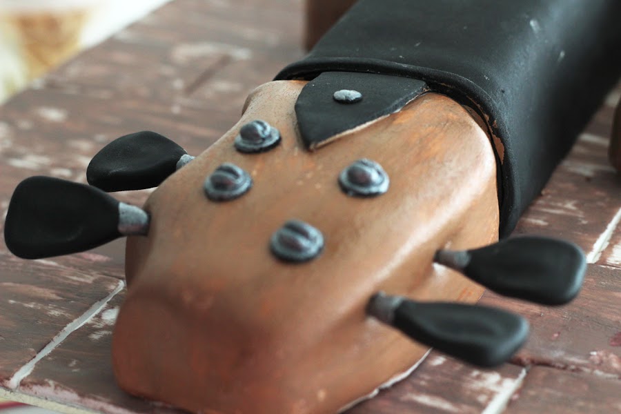 Iremos poquito a poco moldeando los detalles de la guitarra y los acoplaremos a la tarta.