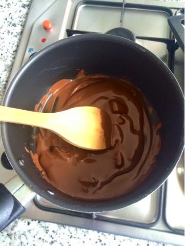 El primer paso es derretir el chocolate de la manera habitual, es decir a baño María o en el horno microondas. En baño María el vapor no debe tocar el chocolate, y si se deciden por el último método recuerden poner tiempos de 10 segundos cada vez, para evitar que el chocolate se les queme.