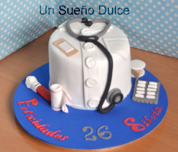 La tarta de hoy es para el cumpleaños de Silvia, novia de mi compañero Aitor, el cual esta siendo un gran apoyo en mi nuevo trabajo, quería sorprenderla con una tarta que no fuera demasiado romántica, así que la hicimos homenajeando su profesión: Enfermera. Anoche le entregamos la tarta en el mesón donde lo celebraban y le dimos la sorpresa. Espero que os gustara chicos!!!!!