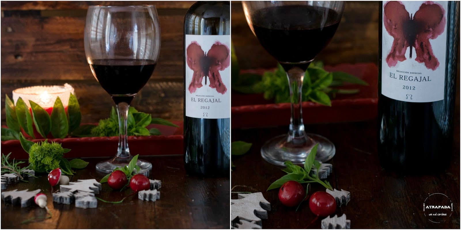Y de Granada a Madrid, con el vino el Regajal, reserva especial de 2012, un vino envejecido 12 meses en barrica de roble francés, cuyas variedades de uva son las siguientes: Tempranillo, Cabernet Sauvignon, Merlot y Syrah. Y cuya nota de cata es la siguiente: Color rojo cereza brillante. En nariz el aroma tradicional de El Regajal, mezcla de frutas rojas y negras. En boca es equilibrado y largo, predomina una intensa carga frutal, los taninos finos, maduros y de gran elegancia. La botella la podéis adquirir a unos 15 euros aproximadamente. Acompañaba en el blog una de las últimas recetas publicadas, ternera rellena de paté y pistachos.