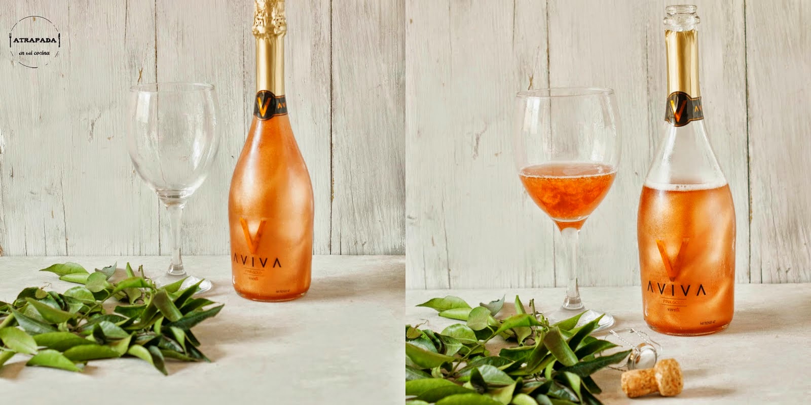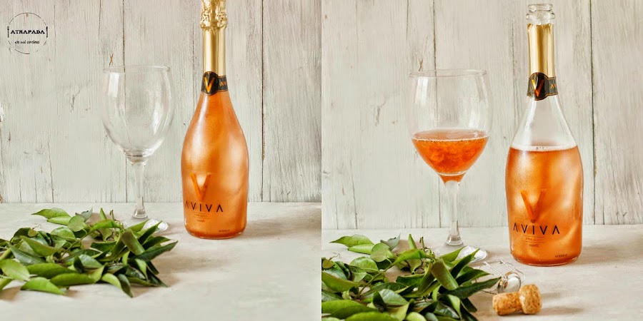 Y salimos de Andalucía para viajar hasta Valencia, se trata de un vino espumoso diferente a todo lo que conocemos, de una graduación muy baja, sólo 5,5%, y con un efecto que se produce al moverlo consistente en crear una sensación parecida a una llama viva de fuego que crece y se mueve en su interior. El Pink Gold de Aviva, cuya variedad de uva es una mezcla de moscatel y airén, se puede tomar tanto acompañando las comidas como en los postres. De aromas recuerda a flores blancas, cítricos y en es especial a pomelo y corteza de naranja. En boca es dulce, de paso agradable y ligeramente persistente, con acidez equilibrada e integrada. Este vino valenciano, de Vintes, Torre Oría, tiene dos hermanos más, el Aviva Platinum y el Aviva Gold, vinos que también compré y que no he tenido tiempo ni de fotografiarlos para el blog. Lo recomiendo de cara a las fiestas navideñas, seguro que sorprenderá a vuestros comensales, además, al tener tan baja graduación alcohólica, es ideal para beber más de una copa. Lo he visto en tiendas on line sobre los ocho euros la botella. Acompañaba el blog a un ceviche de dorada y gambas con mandarina.