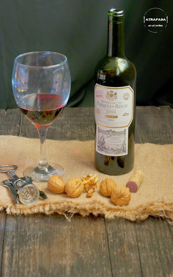 No podía faltar un Rioja en esta selección, y el Marqués de Riscal es uno de los vinos comerciales más conocido, Marqués de Riscal, Crianza del 2009. "Los reservas de Marqués de Riscal se elaboran, básicamente, a partir de uvas procedentes de viñas de más de 15 años de la variedad Tempranillo, situadas en los mejores suelos arcillo calcáreos de la Rioja Alavesa. Esta variedad soporta bien la crianza en madera y el envejecimiento en botella gracias a su buen equilibrio ácido y a su fina tanicidad. Las variedades Graciano y Mazuelo, cuyo porcentaje en la mezcla no sobrepasa el 10%, aportan frescura y viveza de color. La fermentación se realiza a una temperatura controlada de 26ºC con un tiempo de maceración que no sobrepasa los 12 días. Los reservas de Riscal permanecen aproximadamente dos años en barrica de roble americano, configurando un vino que se encuadra dentro de los cánones del clasicismo riojano, fresco, fino, elegante y con un gran potencial de envejecimiento. Antes de salir al mercado tiene un periodo mínimo de afinamiento en botella de un año. Vino de color cereza bastante cubierto. Aroma balsámico y especiado de gran complejidad, con notas de frutos negros maduros y ligeramente tostadas. En boca tiene buena estructura, es sabroso, denso y con taninos redondos y elegantes. El final es largo y fresco, con un leve recuerdo de la madera de roble." Poco más que añadir de este vino, salvo que tiene una nota de 91 puntos y un precio que ronda los 13 euros. Lo acompañamos con unos canelones de carne y nueces que resultaron espectaculares.