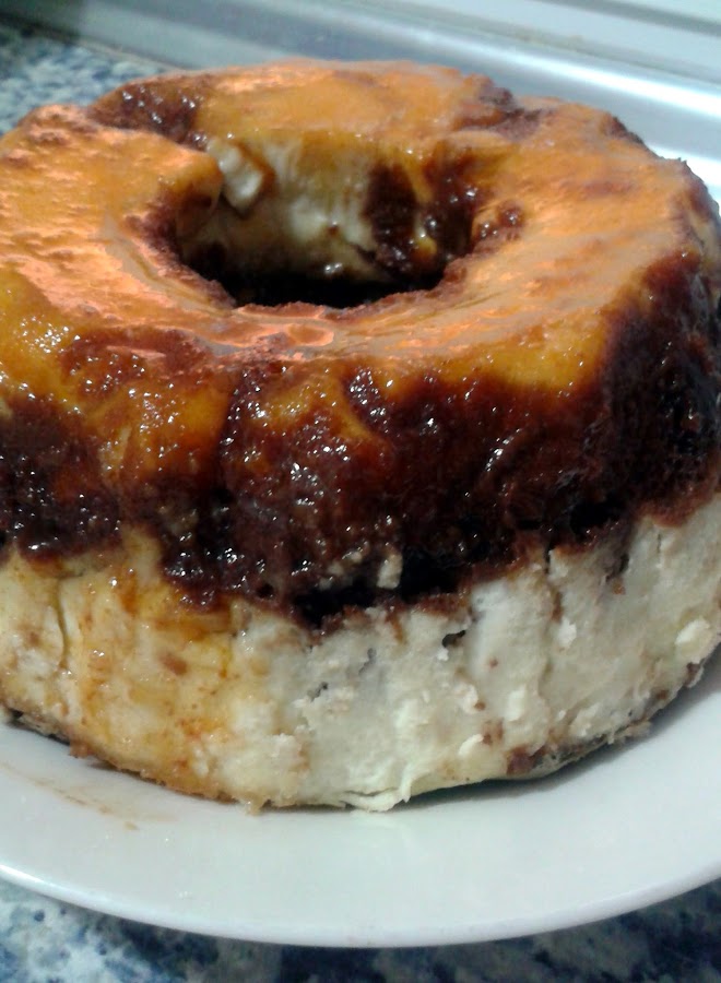 Un bizcochoflan, lo encontré por internet y me llamó la atención y esta tarde me he puesto manos a la obra y lo he echo.