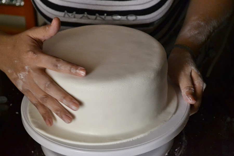 El día antes del cumple tocaba montar la tarta, para mí que no hago tartas a menudo fue difícil, pero mas fácil de lo que era antes, ahora me siento mas confiada haciéndolo gracias a un par de cursitos que he hecho del tema.