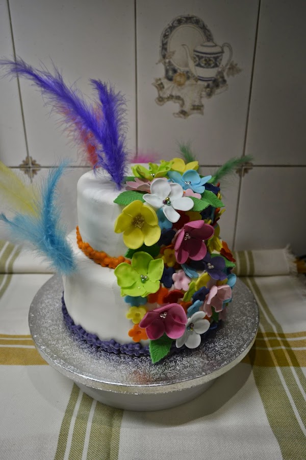 Bueno pues te cuento... (antes tienes que saber que soy una exagerada, en casi todo). Me propuse como reto personal hacer una tarta de dos pisos, poniendo en práctica ciertas cosillas que ido aprendiendo.