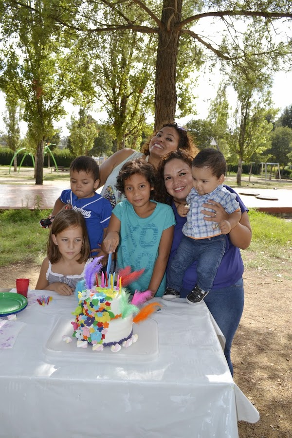El cumpleaños lo celebramos en el parque que está cerca de casa, al aire libre, aprovechando los últimos cartuchos que nos deja el verano...