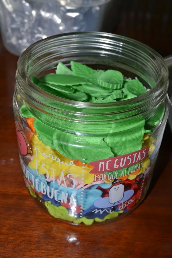 Como nos las usé todas en la tarta, las que sobraron las metí en un tarro de cristal para futuras creaciones jejejeje...