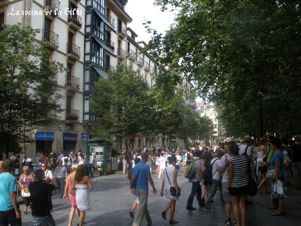 Astrid me espera en Amara, y después de los correspondientes saludos, entramos en la primera tienda delicatessen que se cruza en nuestro camino. Todos los frascos, bolsitas, quesos, mejunjes, botecitos, me susurran suavemente que me los lleve a mi casa, que prometen ser buenos..., pero me porto bien y solo compro tinta de calamar natural y un botecito de aceite de aguacate. Damos un paseo hasta la estación del tren para recoger el billete de vuelta a Barna, para Astrid para el día siguiente.