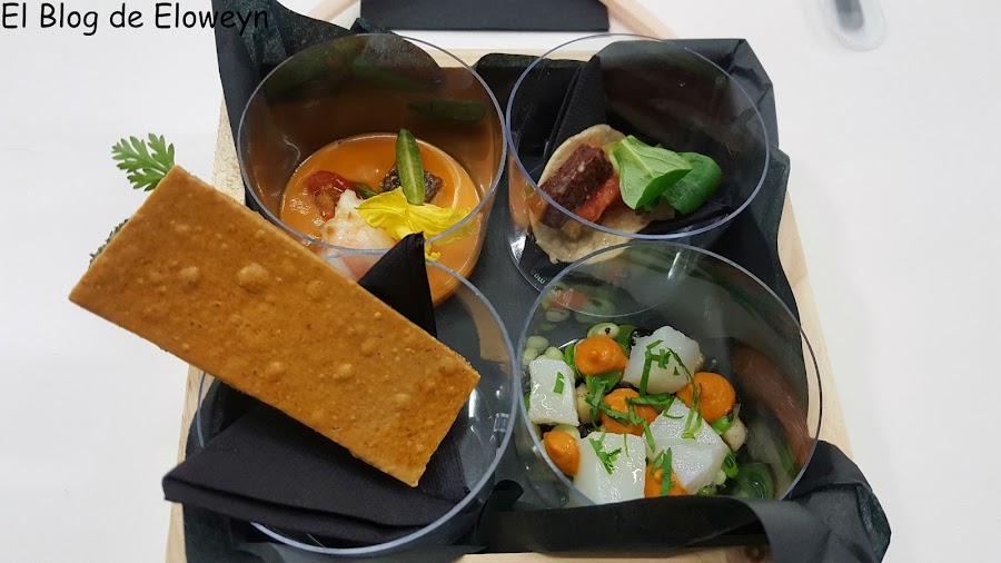 En total eran seis cajas temáticas, pero en Alimentaria pudimos degustar sólo dos: La mediterránea y la japonesa. La primera que nos dieron a probar fue la mediterránea.