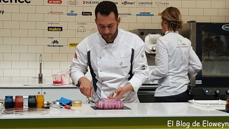 Después de eso, volví a pasear por la feria esperando la hora del showcooking de David Pallàs "6 glaseados, brillos y decoraciones rápidas", en el salón Hostelco. Llegó un momento que me harté de tanto caminar y al final, decidí coger buen sitio para el showcooking y descansar un rato... llegué una hora antes, pero es que ya no podía con mi alma... jajaja.