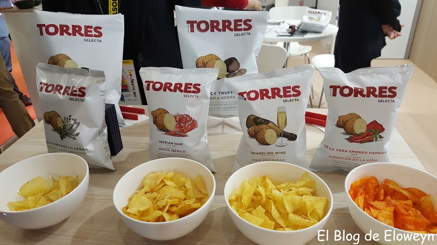 Ya iba siendo la hora de ir hacia el taller magistral de Carme Ruscalleda y me fui hacia el lugar donde se impartía, la sala Alimentaria Experience, pero por el camino, como todavía tenía tiempo, me paré en el stand de patatas fritas Torres y me dieron a probar todos los sabores.