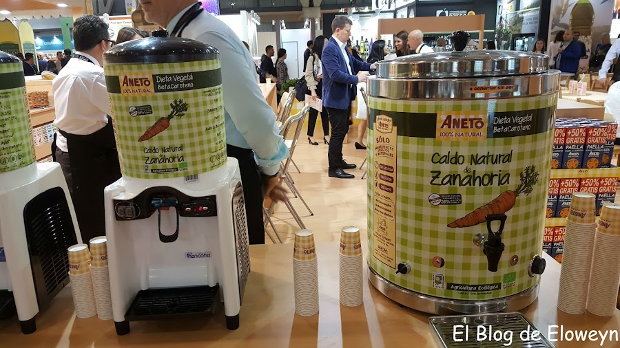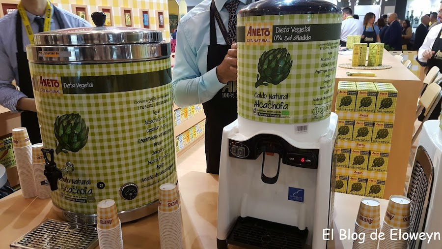 Estuve fisgoneando por allí y fueron muy amables conmigo. Me dieron a probar las novedades de este año. Las dos novedades son los caldos dietéticos, pensados para la gente que quiere cuidarse. No son tan espesos como una crema, sino que son más bien tirando a líquidos. En concreto, el caldo natural de zanahoria y el caldo natural de alcachofa ecológica.