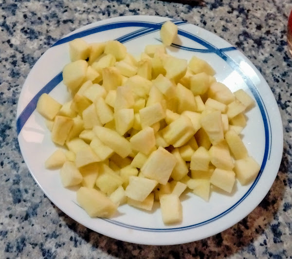 Un puňado de azúcar con canela para espolvorearPelamos las manzanas y las troceamos,
