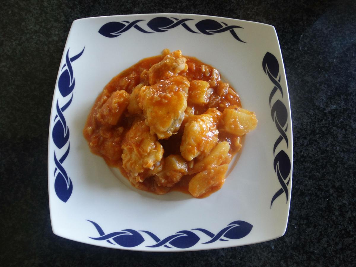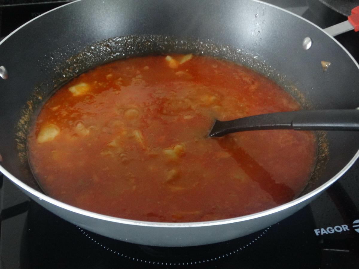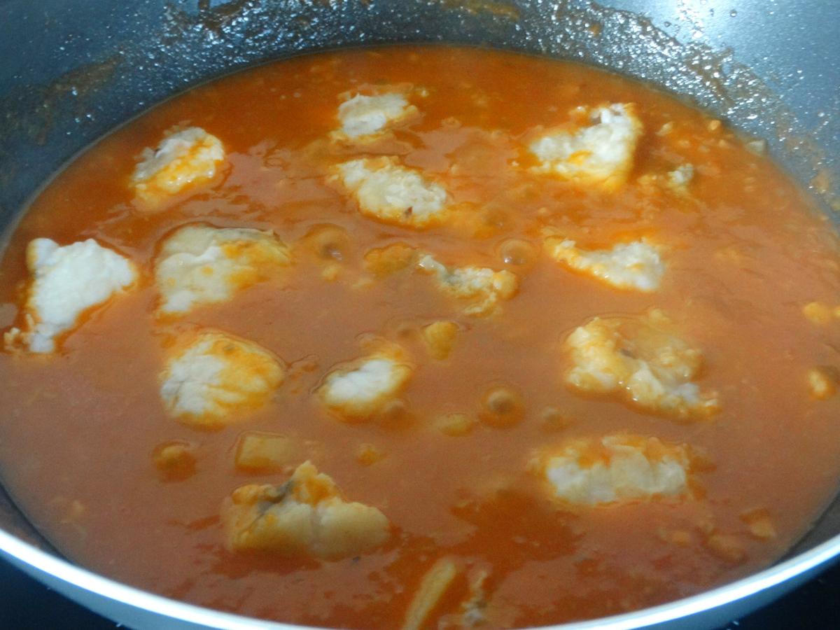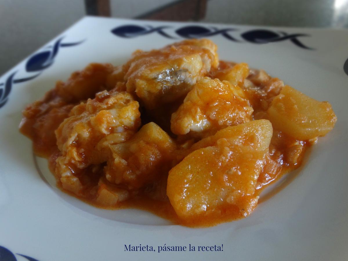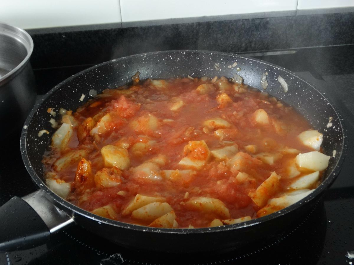 Cuando las patatas estén hechas volvemos a incorporar los trozos de rape y dejamos cocinar unos cinco minutos más.