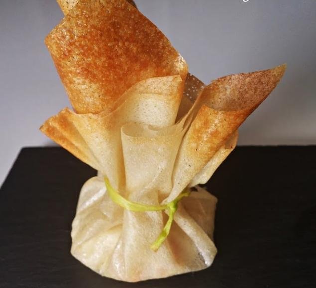 La segunda opción son unos saquitos de queso y langostinos.