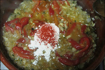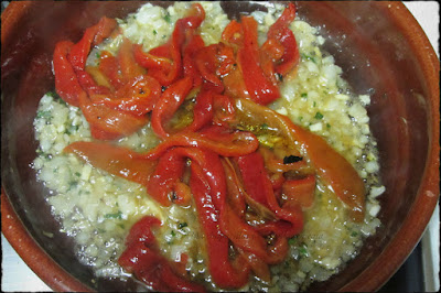 Cuando haya ablandado todo echar los pimientos asados (yo siempre tengo congelados gracias a mi suegra (‿))