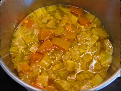 Vamos con el primer plato, una cremita muy rica de calabaza y calabacin.