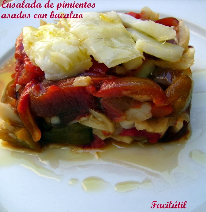 Loli, de Fácilutil, nos ha traído esta delicia de ensalada de pimientos asados con bacalao.