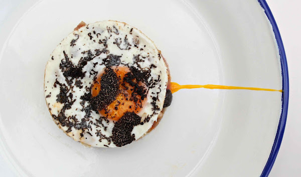 Trufa laminada o rallada como para una boda y le pintas el chorretón de yema.