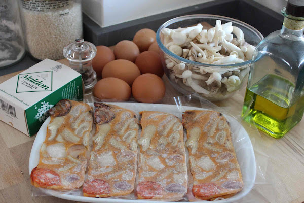 En una salteas las setas, con un poquito de ajo y aceite y en la otra, vas haciendo los huevos a la plancha.