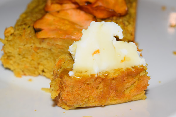 Sí, la foto no hace justicia a lo que les digo, pero así pasa a veces. Sin embargo, prometo hacerla de nuevo y esforzarme un poquito más en el estilismo para convencerlos mejor. En tanto, puedo argumentar a mi favor que esta delicia es una excelente opción para quienes cuidan lo que comen, ya que no contiene gluten, no contiene lácteos y tampoco azúcar añadida. Su sabor es hasta cierto punto neutro (sólo el dulzor del camote rallado) que puede servir como pan para sopa o como cama de algún spread dulce o salado. Pero primero pruébenlo así, solito. Después, les sugiero untarle un poco de ricotta y algo de miel de abeja y ¡ni se imaginan!.