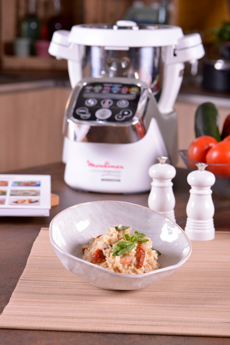 Si alguna vez habéis intentando hacer risotto en casa, pero el resultado ha sido un arroz seco, se debe a la falta de movimiento constante del arroz mientras se añade el caldo. Este paso es muy tedioso, así que con el robot de cocina el problema estará resuelto.