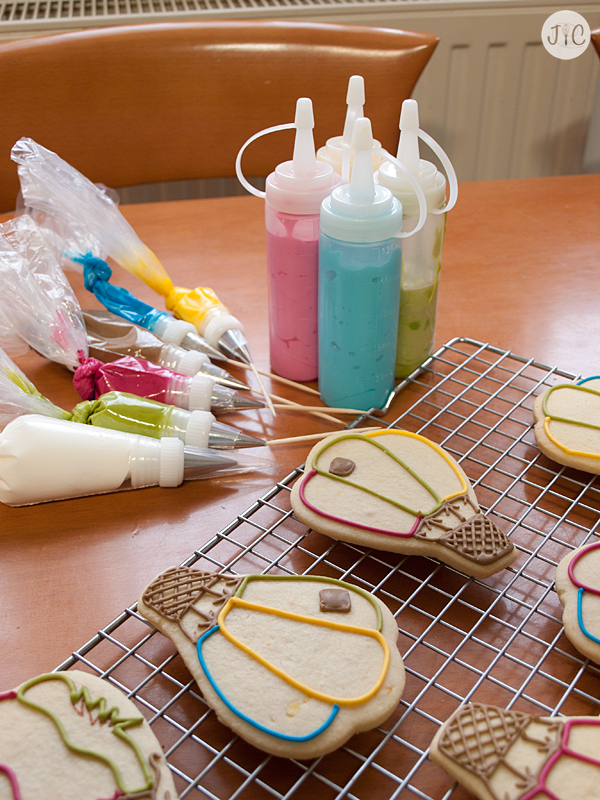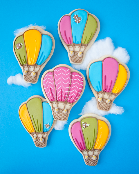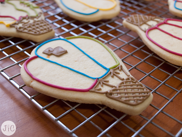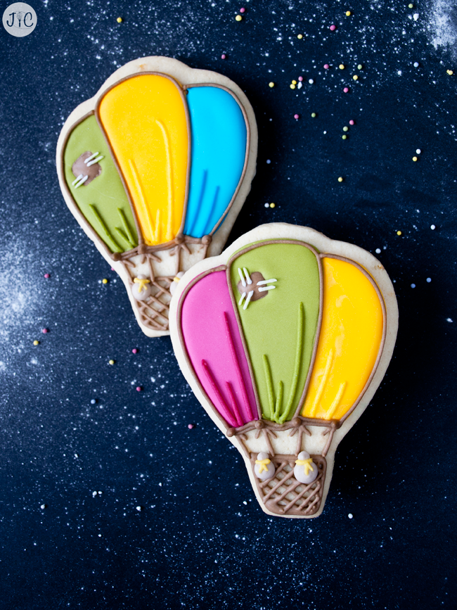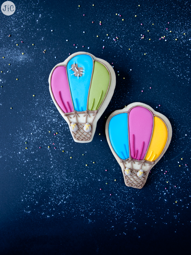 Encontré el cortador de globo aerostático y entonces vi las galletas. Necesitaba hacerlas y me imaginaba unas galletas muy coloridas, con colores vivos y llamativos. Al final los resultados nunca son como uno se imagina. Esto no quiere decir que no me gusten. No. Todo lo contrario, estoy muy emocionado con mis galletas. Creo que son mejores que las que me imaginaba (esto no suele pasar muy a menudo).