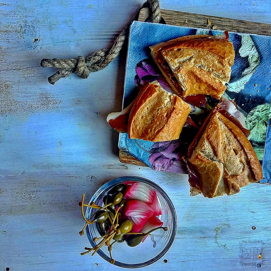 Me he levantado sin prisa pero sin pausa. A media mañana me ha entrado hambre y hambre ya de salado mmnn he abierto el frigorífico y las tápenas y la cebolla encurtida me han hecho ojitos.