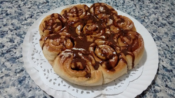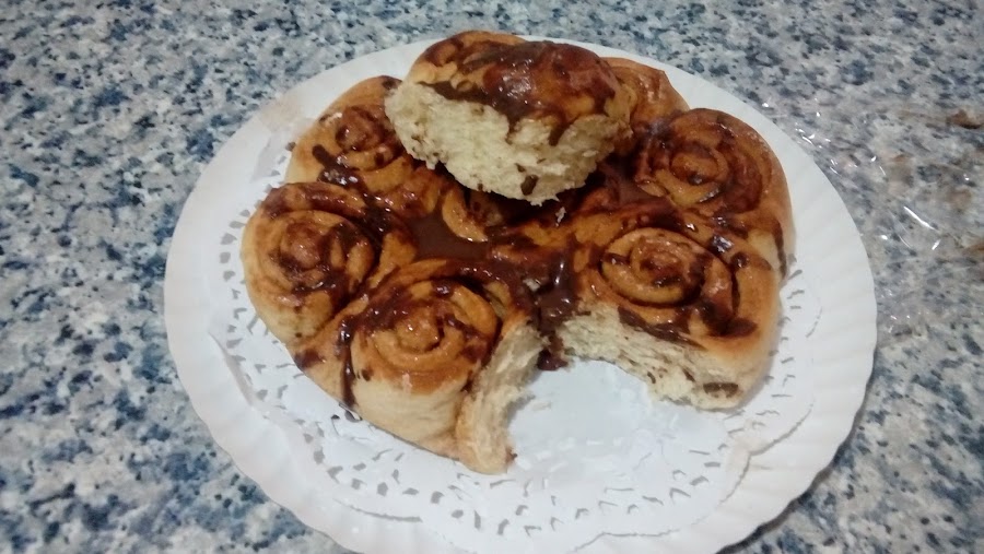 Los rollos de canela le he echado un chorrito de chocolate liquido, pues me encanta.