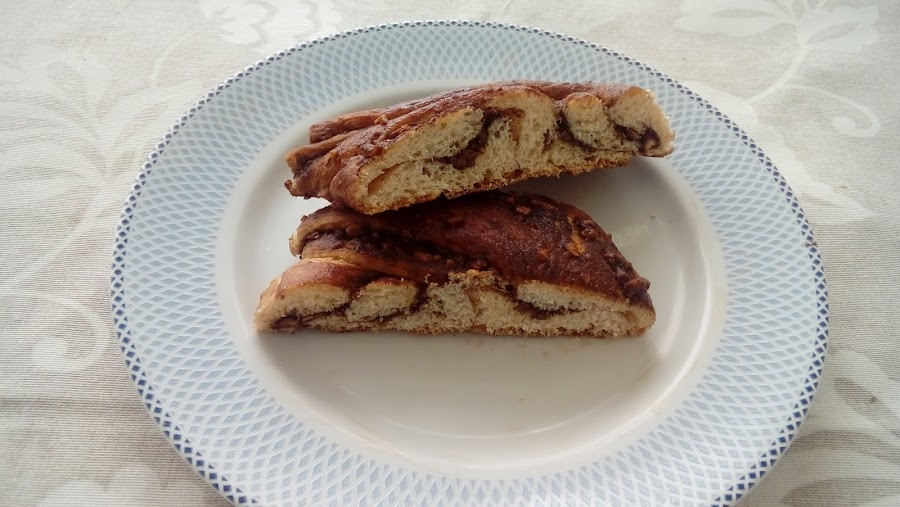 ROLLOS DE CANELA Y TRENZA DE CHOCOLATE Y CACAHUETE.