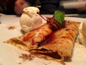 Sin embargo, esta vez nos terminamos decidiendo por la panqueca de dulce de leche con helados de vainilla. Es perfecta!