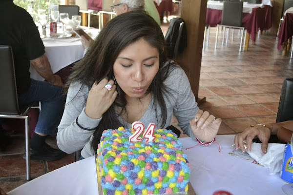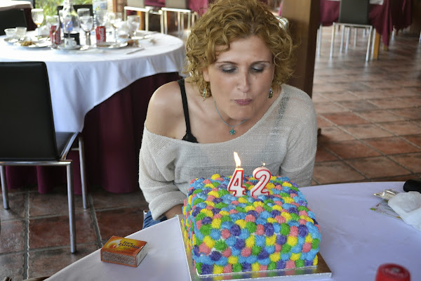 Mi tarta arco iris, iba para dos cumpleañeras, una de 24 y otra de 42... y como la cosa no está para gastar mucho, hicimos una tarta y con dos velas resolvimos, ya que solo era invertir los números...