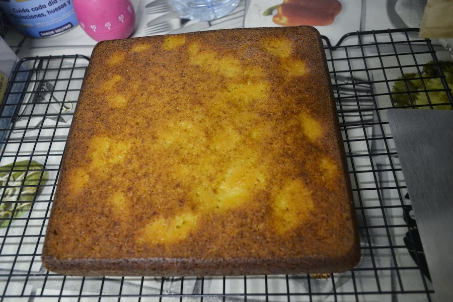 Vigila que no se dore demasiado, lo mejor es comprobar insertando un palillo en el bizcocho, si este sale limpio es que ya está listo. Recuerda no abrir el horno hasta que pase la mayor parte del tiempo para hacer la prueba del palillo.