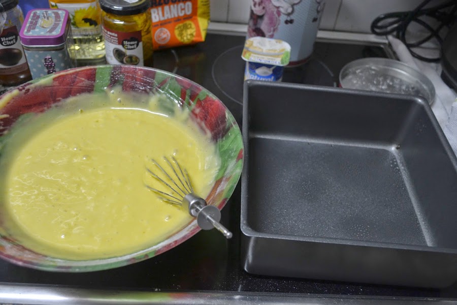 Engrasa un par de moldes y reparte la mezcla a partes iguales, en mi caso eran dos moldes de 20 cm cada uno.