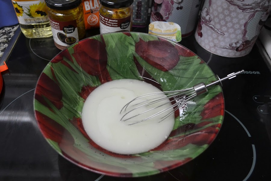 Comienza batiendo los yogures, el azúcar y el aceite en un recipiente o en una batidora...