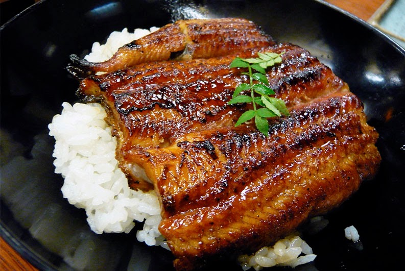4. Sirve el arroz caliente en cuatro cuencos grandes. Vierte la salsa kabayaki sobre el arroz. Pon trozos de anguila caliente encima. Vierte más salsa kabayaki sobre la anguila.