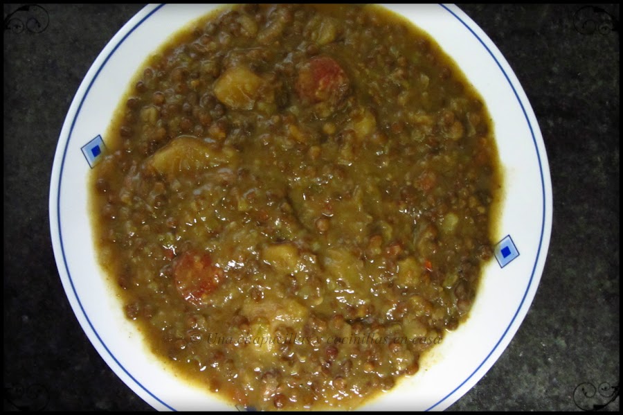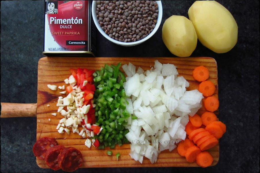 Una receta de cuchara calentita que entra muy bien en estos días de invierno que parece que no se acaba nunca. En mi receta opto por picar y sofreír las verduras, me gusta que se vean, si sois de los que no os gusta encontrar ningún trozo, siempre podéis echarlas enteras, luego una vez cocinado todo el conjunto, separarlas pasarlas por la batidora y agregarlas de nuevo a las lentejas.