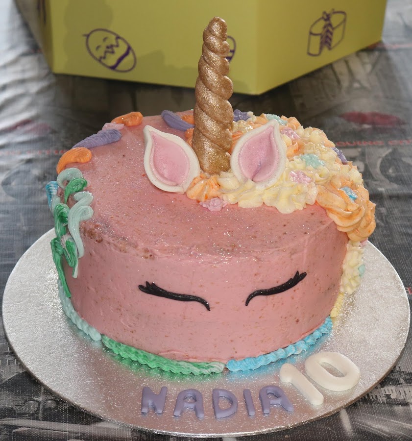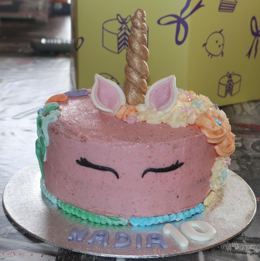 Nadia cumplía 10 años y como niña el color preferido el rosa, además como moda y gustos para niñs de 10 años unicornio.