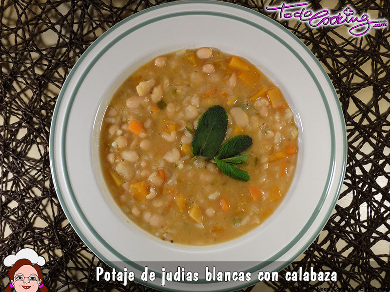 No podía faltar en esta mesa un buen potaje, casi uno de los "cuchareos" por excelencia, y éste viene de la mano de Todo Cooking. Ni más ni menos que un Potaje de judías blancas con calabaza. Ya el nombre invita a sumergirte en él. Un clásico de la cocina malagueña (concretamente de la zona de Axarquia) donde las habichuelas cohabitan con el dulzor de la calabaza. Simplemente genial...