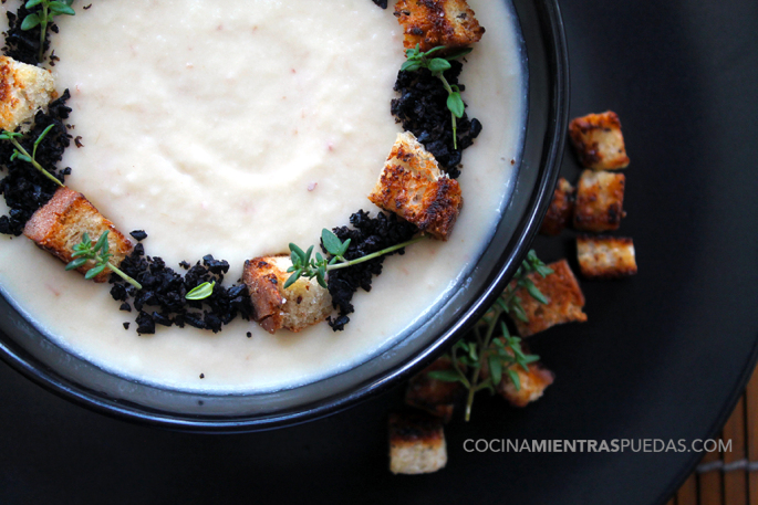 Desde el blog Cocina Mientras Puedas nos llega esta apetitosa y sugerente Crema de Coliflor con tierra de aceitunas negra y ajo negro. Sólo con el nombre ya te puedes ir haciendo una idea de la gran combinación de ingredientes y sabores que explotarán en tu boca. Amantes y no amantes de la coliflor, aquí tenéis una oportunidad sensacional de darle vida y carisma a este cremoso plato.