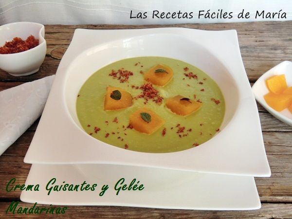 Comenzamos este viaje verde por Las recetas de María. Su propuesta de Crema de Guisantes y Gelée de mandarinas es una "revisión" del clásico guisantes con jamón. Toda una innovación culinaria muy bien presentada y que hará las delicias de mayores y niños.
