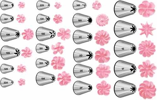 - Boquillas: Por supuesto! No podían faltar!! Las hay de mil tamaños y formas distintas y a medida que os vayáis metiendo más y más en este mundillo acabaréis teniendo una colección infinita :P Aquí van las más conocidas (todas de Wilton)!!