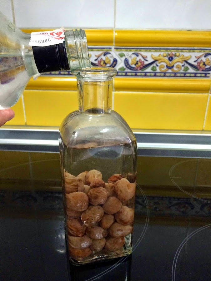 Las ponemos en un recipiente y cubrimos con el aguardiente. Ahora llega el proceso más difícil, esperar al menos tres meses para que se maceren y tomen todo el sabor. Paciencia porque de verdad que merece la pena!