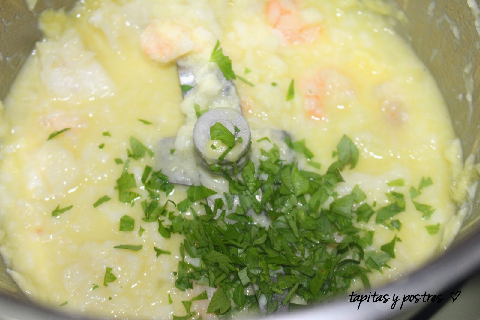 Ahora he querido prepararlas de nuevo pero he cocinado previamente el pescado y le he añadido unas gambitas.